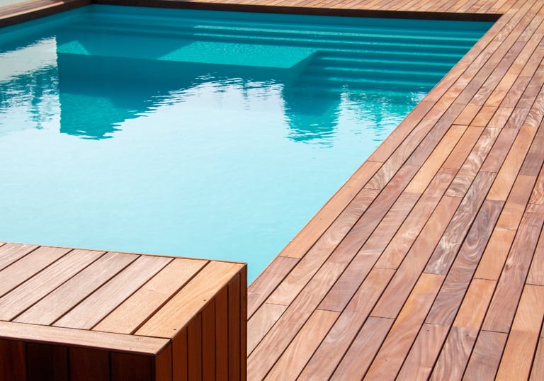 Instalamos pisos deck de lujo, ideales para terrazas, jardines y piscinas con estilo y resistencia.